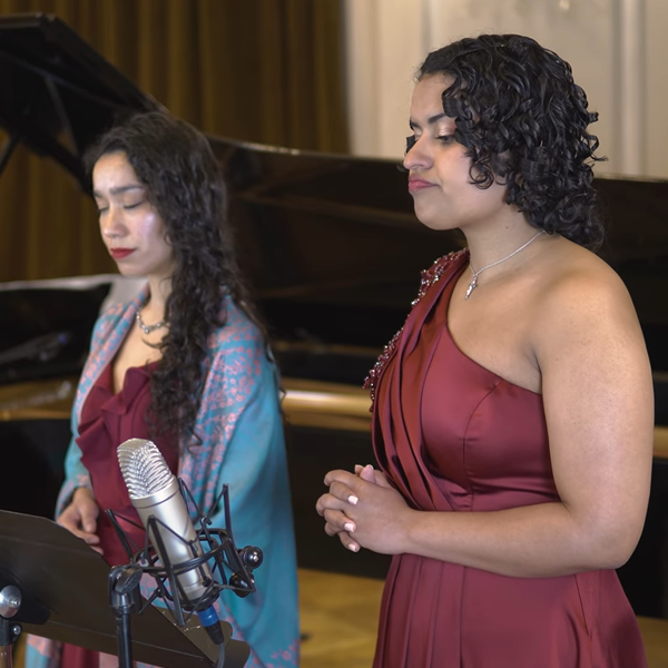 En este negarse a una voz principal y una subsidiaria, al igual que en la búsqueda consciente, intensa e intencional de la disonancia como punto de expresión y de mórbida “belleza”, no puede dejar de tener cierta remembranza con los madrigales a dos voces de un Monteverdi, por ejemplo. Es más, como un pequeño juego con el título de la obra, las dos voces poquísimas veces reposarán al unísono. El texto, por otra parte, es tratado como una materia prima en la que puede fraccionarse, trabajarse como un fonema; de hecho, el soneto no se recoge completo. La inteligibilidad está supeditada al color, al clima sonoro. El piano, por su parte, va conduciendo, marcando el tactus, el latido; propone ciertos gestos sonoros que van dando unidad al relato, como la nota repetida, por ejemplo; alterna el canto con breves momentos de vuelo lírico, rapsódico incluso, como cadencias de concierto; pero, aún más importante, da el carácter al inicio y lo recapitula al final, otorgando unidad a la canción, que se cierra como si hubiéramos vivido un sueño, atestiguado una visión en la que las hablantes (cantantes) pasan frente a nosotros con sus letanías, sin nunca percatarse de nuestra presencia.